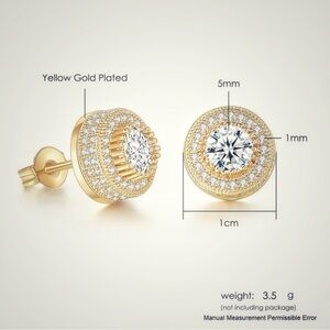 NEW 18K Gold-Plated Steel Micro Pavé Rhinestone Halo Stud Earrings Unisex