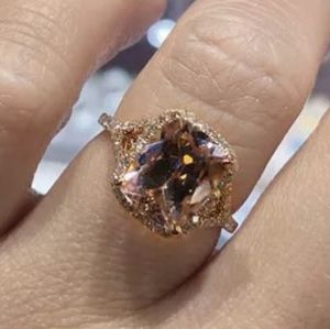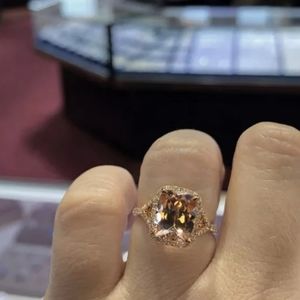 NEW 18K ROSE GOLD RADIANT MORGANITE HALO RING
