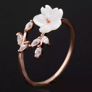 NEW 18K Rose Gold Flower Diamond Adjustable Ring
