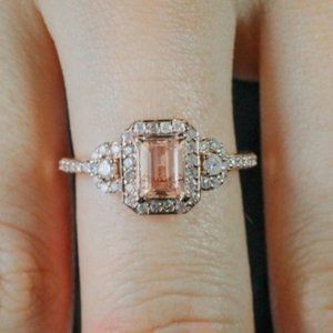 NEW 18K Rose Gold Morganite 2 Piece Ring Set