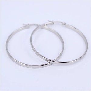NEW 18K White Gold 1.5'' Round Hoop Earrings 1