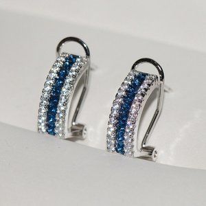 *NEW 18K White Gold Blue White Diamond Omega Studs