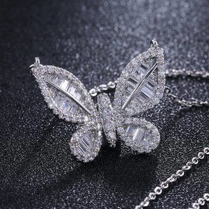 NEW 18K White Gold Diamond Butterfly Necklace A2