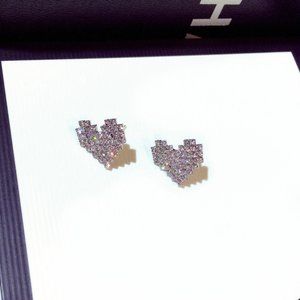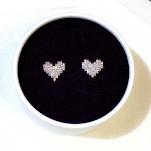 NEW 18K White Gold Diamond Pave Heart Earrings Z