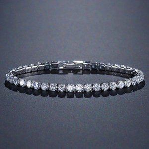 NEW 18K White Gold Plated Round Diamond Bracelet