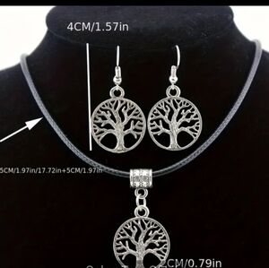NEW 18K White GoldPlated Tree of Life Corded Necklace & Earrings Set