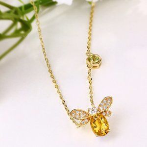 NEW 18K Yellow Gold Diamond Citrine Bee Necklace
