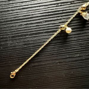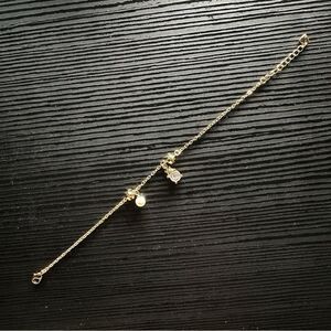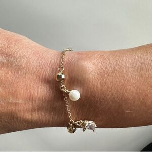NEW 18K Yellow Gold Plated Faux Pearl Crystal CZ Charm Bracelet 7” to 8.5"