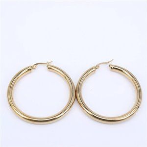 NEW 18K Yellow Gold Round 2'' Tube Hoop Earrings