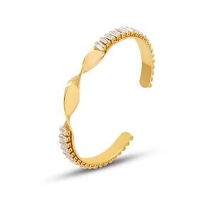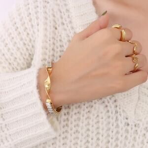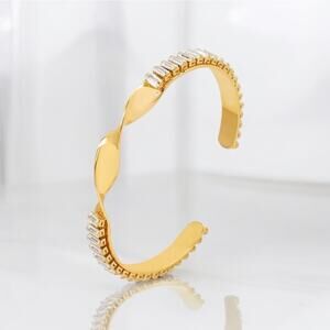 NEW 18K yellow gold pl CZ twisted open bangle adjustable bracelet jewelry B22A
