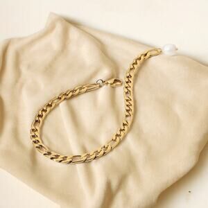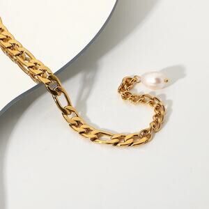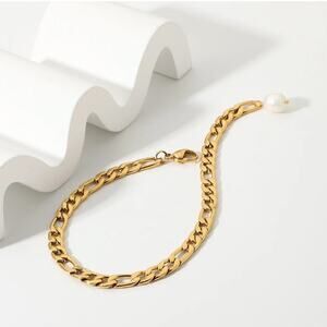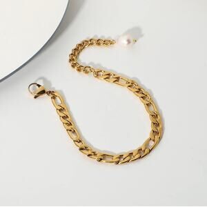 NEW 18K yellow gold plated Figaro chain freshwater pearl bracelet jewelry B20B