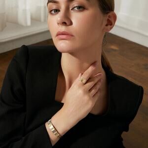 NEW 18K yellow gold plated brushed open adjustable bangle bracelet jewelry B5A