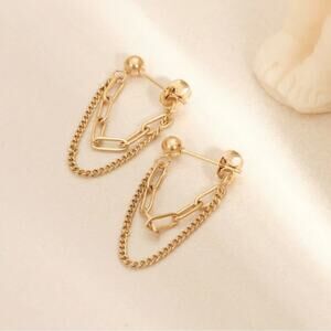 NEW 18K yellow gold plated double chain dangle drop earrings jewelry B25A