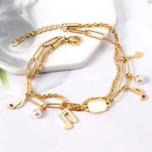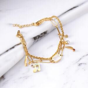 NEW 18K yellow gold plated double chain music note bracelet jewelry B28A