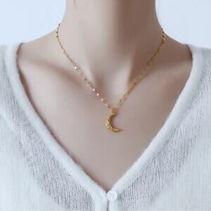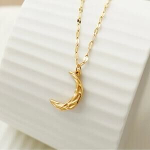 NEW 18K yellow gold plated hammered crescent moon chain necklace jewelry B23B
