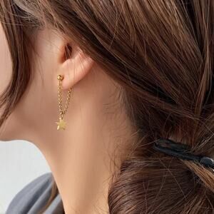 NEW 18K yellow gold plated star stud drop chain earrings jewelry B26A