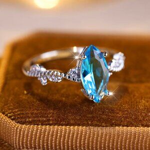 NEW 18k White Gold Blue Sapphire Diamond Ring Marquise Cut Ring