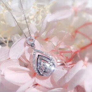 NEW 18k White Gold Diamond Pear Cut Necklace Teardrop Pendant Necklace