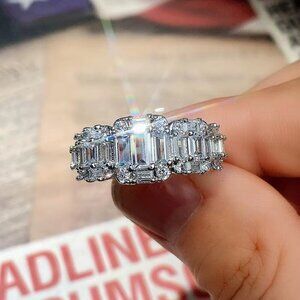 NEW 18k White Gold Diamond Ring Emerald Cut Ring Band