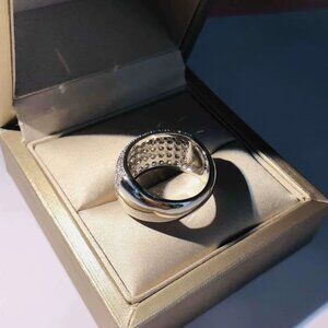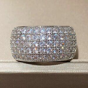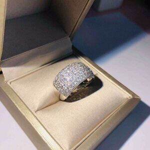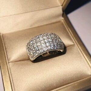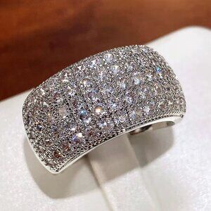 NEW 18k White Gold Pave Diamond Ring Thick Wide Ring Band Statement Ring