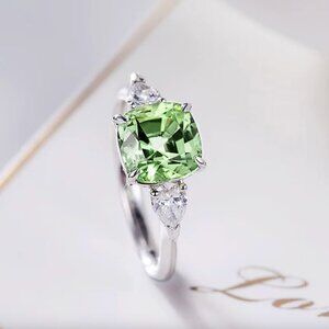 NEW 18k White Gold Peridot Diamond Ring Cushion Cut