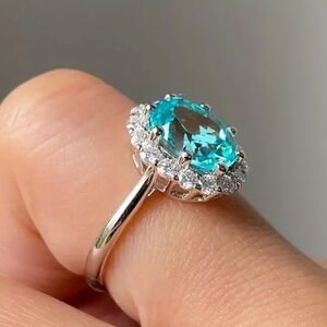 NEW 18k White GoldPlated Teal Green Rhinestone Ring of Elegance