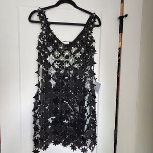 NEW $1920 Paco Rabanne RABANNE Star Embellished Mesh Mini Dresssz 36 Bla…