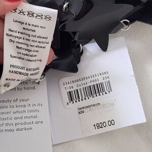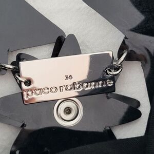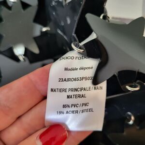 This stunning Paco Rabanne dress is sure to turn heads with its star embellished mesh design. The black color adds a touch of elegance, making it perfect for any special occasion. The sleeveless cut and mini length create a flattering silhouette, while the size type of regular and size of 36 FR ensure a comfortable fit. The brand speaks to the quality and attention to detail put into this dress, and the fabric type of mesh adds a unique texture. This dress is a must-have addition to any fashion-forward woman's wardrobe.