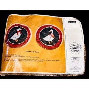 NEW 1984 Creative Circle Bib & Bows 2309 Embroidery Kit 8" Round Set 2 Vtg 11055