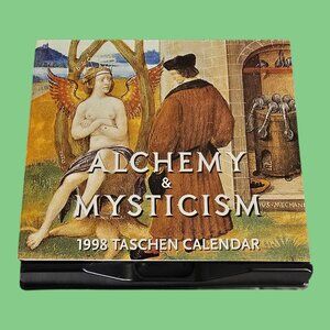This is a brand day to day, tear off desk calendar from 1998. 1998 has the same calendar days of the week as 2026, so it can be used this coming year! (But please note that the holidays may not line up perfectly as some are different every year.) This particular piece is a Taschen publication of "Alchemy & Mysticism". Each page has a piece of art related to the theme with an explanation next to it. The calendar comes with an easel on the back so it can stand. The pages measure about 5.25" wide and 4.5" tall.