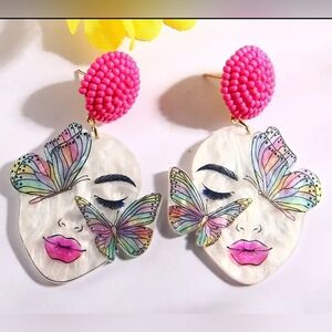 NEW! 2 For 25$ Pink and Multicolor Butterfly Face Earrings NEW