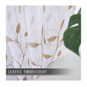 Lively Embroidery: White embroidered leaves on the white sheer curtains add a pleasant and elegant sense to your room, take your mind to the nature, and give your spirit a real sense of peace
