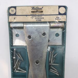 NEW 2 (pair) National Hardware Zinc Plated Steel, Extra Heavy T-Hinge. 8 inches by 5.5 inches. V286 Hinges come in original package, as a set with screws.