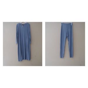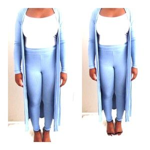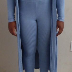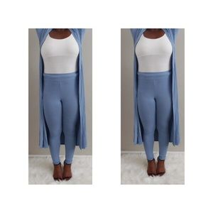 2 PIECE LIGHT BLUE LONG CARDIGAN & LEGGINGS STRETCH MATERIAL MODEL IS WEARING A MEDIUM! The 2 pieces can be worn together/separately! -
