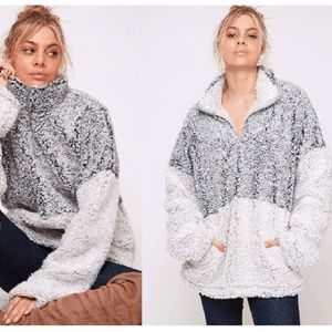 NEW 2 TONE FAUX FUR SHERPA PULL OVER TOP JACKET