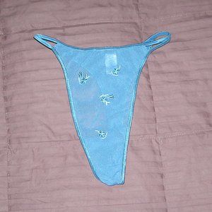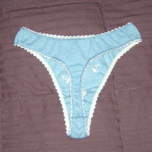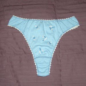 NEW 2 Thongs size Small 4-6 Cute Blue Floral Embroidery