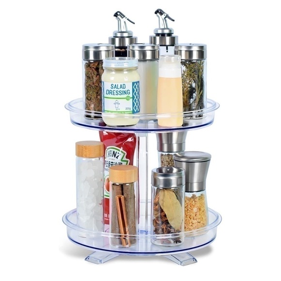 SAFE & RELIABLE - Food-grade design, this tiered lazy susan organizer not only can be used for snacks and sauces , but also used for fruits, dried fruits, skincare bottles, craft supplies etc. Clear plastic acrylic