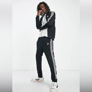 Mens 2 pc pants and jacket set New with tags Black and white 3 stripe adidas Retails for $75 Selling for $55 Suit up in a time-honored tradition. This adidas track suit calls back to the early days of hip-hop style and vintage sportswear with its 3-Stripes and stand-up collar. Recycled polyester tricot fabric is soft, comfortable and durable enough for whatever your day has in store. This product is made with Primegreen, a series of high-performance recycled materials. Regular fit Jacket: Full zip with stand-up collar 100% recycled polyester tricot Jacket and pants: Side pockets Primegreen