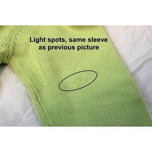 Light storage spots on one sleeve and back. they were difficult to photograph, but you can see them in the light when you hold the sweater up.