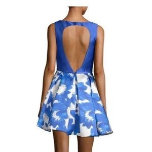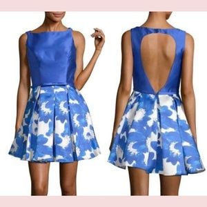 NEW $220 Glamour by Terani Couture [ 8 ] Floral Open Back Mini Dress Blue