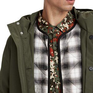 This is a brand new Levi's Folsom Utility Jacket! It's the kind of jacket you want on your next adventure. With its detachable construction, it's really like three jackets in one. The quilted inner layer features convenient hand pockets, an extended silhouette and warm Thermore®-filled lining. The water-resistant outer shell features a protective face guard and utility pockets made for wallets, flashlights and snacks. Wear them apart on milder days or double up for inclement weather.