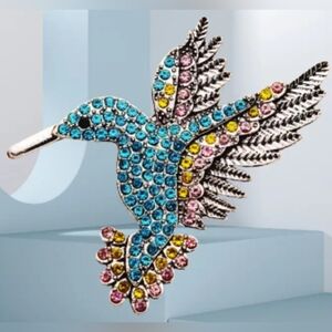 NEW 2/$40 Boho Western Colorful Rhinestone Hummingbird Bird Brooch-(#0235)