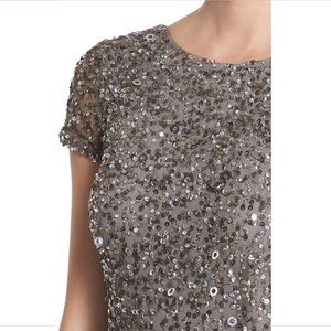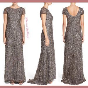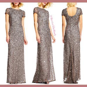 NEW $248 Adrianna Papell Short Sleeve‎ Sequin Mesh Gown in Lead [Size 4 ]