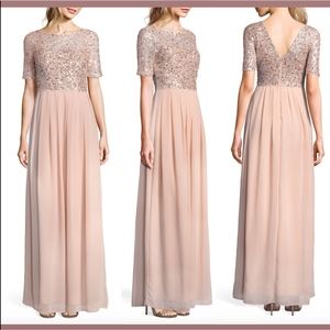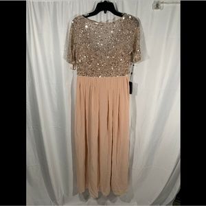 NEW $249 Adrianna Papell Beaded Bodice Georgette Gown English Rose [SZ 8 ] E665