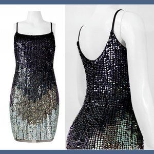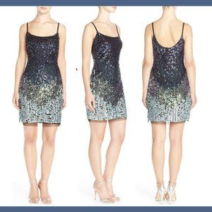 NEW $249 Adrianna Papell Ombre Sequin Slipdress in Black Blue Green [SZ 4 ]