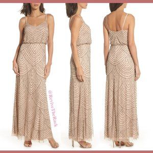NEW $260 Adrianna Papell Art Deco Beaded Blouson Gown in Taupe Pink [SZ 10 ] #M2