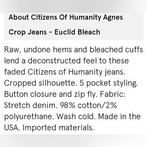 NEW 27 Citizens Of Humanity STRETCH Agnes Avedon Bleach Raw Edge Jeans NWOT