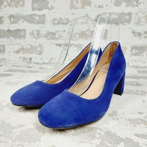 NEW 27 Edit Naturalizer Rebecca Blue Suede Slip On Block Heel Pumps i692
