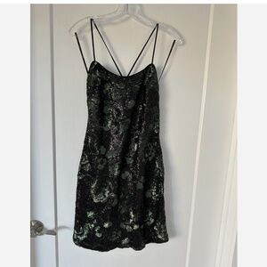 NEW $278 Vera Wang Sequin Cocktail Dress in Black/Green Size 2