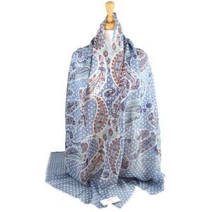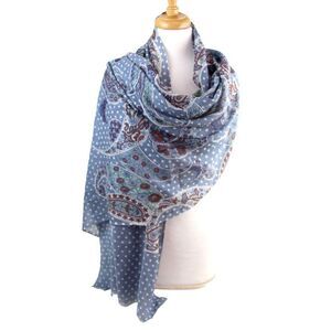 NEW 27"x76.5" ISIS BLUE MULTICOLOR PAISLEY SILK SCARF SHAWL WRAP (B46